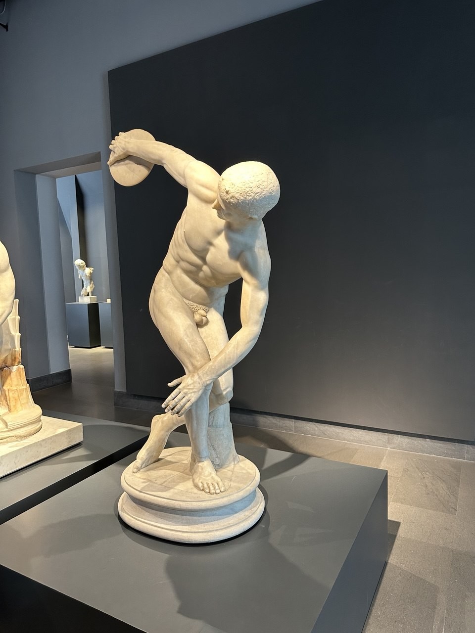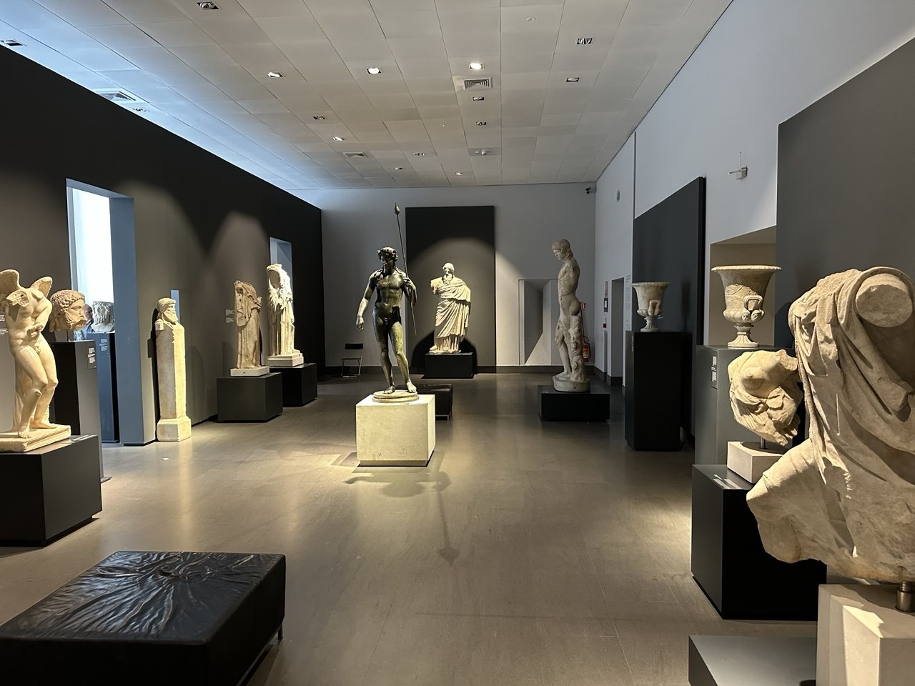 На первом и втором этажах можно увидеть шедевры, обличенные в бронзу и камень — древние статуи. Настоящим сокровищем данной коллекции можно назвать всемирно известную скульптуру «Дискобол», а также статую раненой Ниобиды и скульптуру «Отдыхающий кулачный боец». Третий этаж посвящен декоративному виду искусства. Здесь можно увидеть древние фрески, которые были найдены в Лацио, Помпеях и Риме.